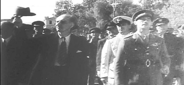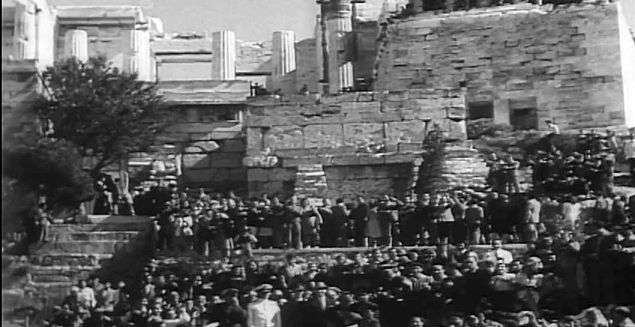 Ακολουθούν οι φωτογραφίες από την τελετή ύψωσης της γαλανόλευκης στην Ακρόπολη. Την ελληνική σημαία υψώνει ο Γεώργιος Παπανδρέου, ενώ υπάρχει τιμητική φρουρά του Ιερού Λόχου, αλλά και τμήμα του 34ου συντάγματος του ΕΛΑΣ.