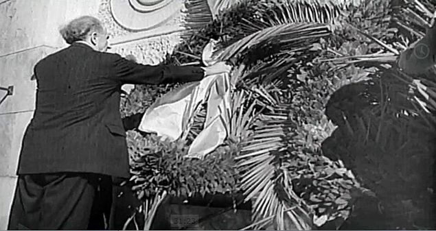 Ο Γεώργιος Παπανδρέου, καταθέτει στεφάνι.