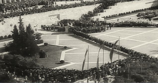 Μετά την τελετή της κατάθεσης, ο κόσμος, αρχίζει να πανηγυρίζει. Βλέπεις νέες και νέους, ντυμένους με εθνικές μας στολές, να ανεμίζουν χαρούμενα τις δάφνες της νίκης.