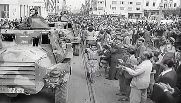 Ο κόσμος τους υποδέχεται με ζητωκραυγές και χειροκροτήματα, όταν εμφανίζονται με τα στρατιωτικά τους οχήματα στους δρόμους της Αθήνας.