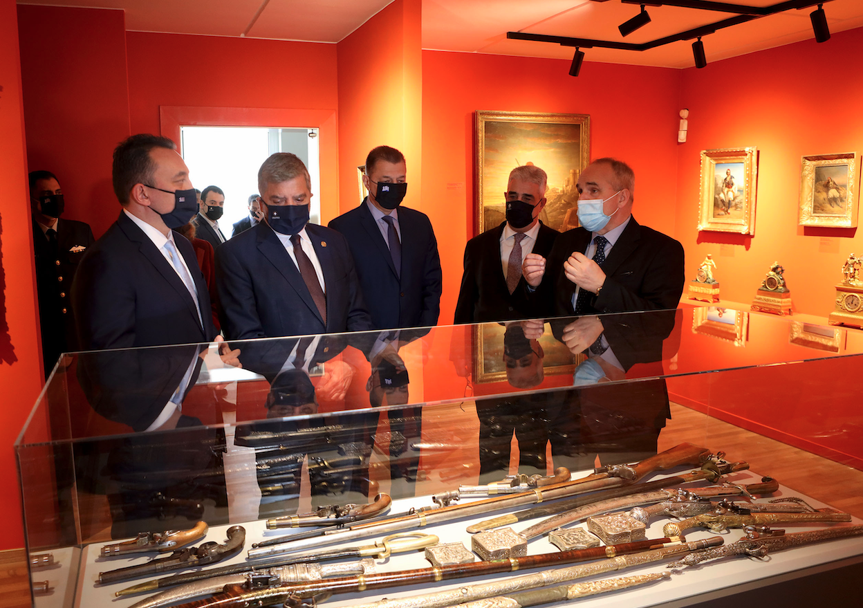 Ο Πρόεδρος της Εταιρίας για τον Ελληνισμό και τον Φιλελληνισμό και ιδρυτής του μουσείου, Κωνσταντίνος Βελέντζας, ξενάγησε τους προσκεκλημένους στις αίθουσες του πρώτου και μοναδικού θεματικού μουσείου στην Ελλάδα, αφιερωμένου στους Φιλέλληνες. Στη συλλογή του περιλαμβάνονται περισσότερα από 2.500 αντικείμενα φιλελληνικής τέχνης, πίνακες, βιβλία, έγραφα μεγάλης ιστορικής αξίας, κλπ. που προβάλλουν την ιστορία του Φιλελληνισμού από την Αναγέννηση έως σήμερα. Μεταξύ άλλων, το Μουσείο διαθέτει τη μεγαλύτερη διεθνώς συλλογή έργων τέχνης σχετικών με τον λόρδο Βύρωνα και προσωπικών του αντικειμένων, ενώ στον τελευταίο όροφο φιλοξενείται θεματική συλλογή με πορτρέτα, έγγραφα και προσωπικά αντικείμενα Αμερικανών φιλελλήνων.