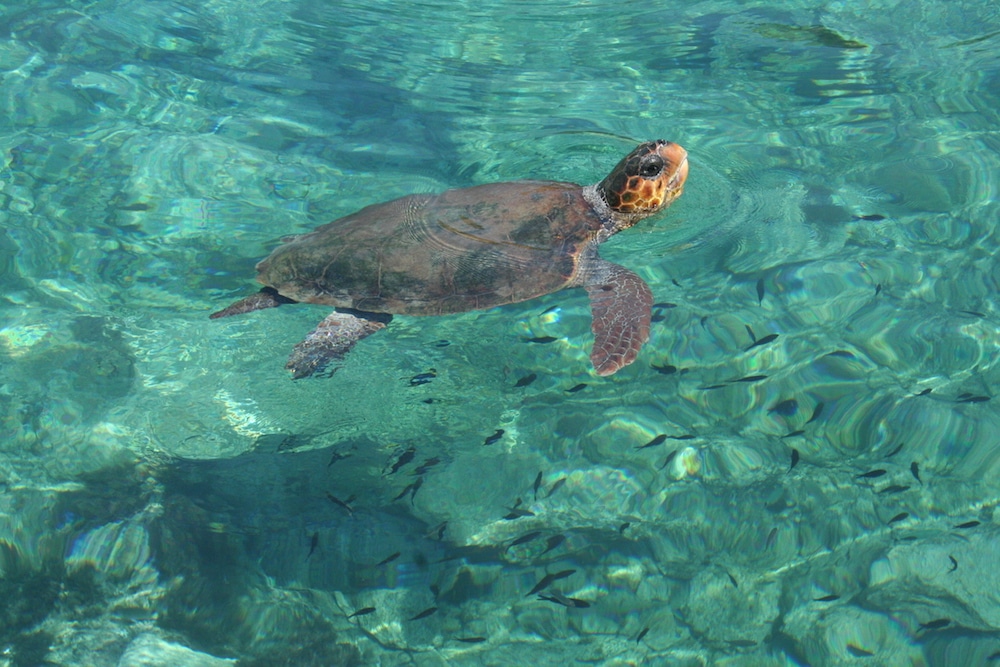 Μία γνωστή γνώριμη παρουσία στο Καψάλι, την οποία αγαπούν πολύ τα παιδιά σε φωτογραφίες 2006 και 2008. Η καρέτα-καρέτα κολυμπά μαζί με τους λουομένους! Δυστυχώς τα τελευταία χρόνια δεν εμφανίζονται οι χελώνες που αποτελούσαν ατραξιόν στην περιοχή. Μία μόνον βλέπουν και σπάνια, αν και δεν έχει εξακριβωθεί αν οι χελώνες αυτές ήταν από τα θύματα που έχουν εκβρασθεί στις Κυθηραϊκές ακτές τα προηγούμενα χρόνια. (Φωτ. Π. Καλλίγερος)