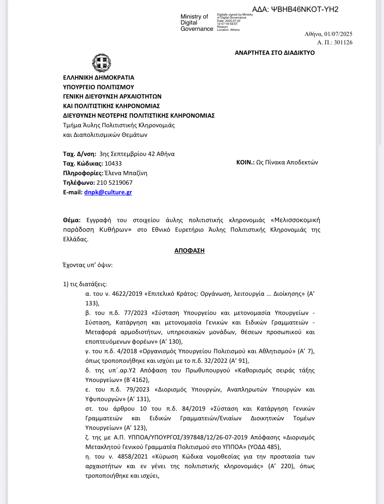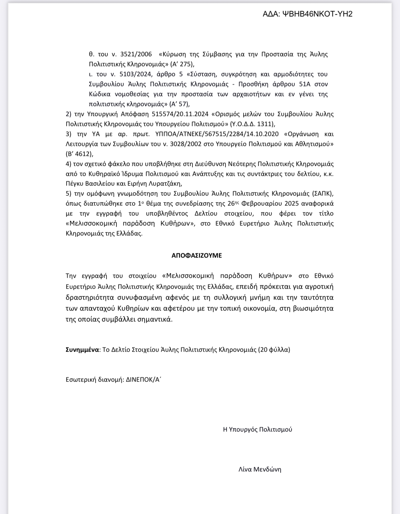- Στην Άυλη Πολιτιστική Κληρονομιά η Μελισσοκομική Παράδοση των Κυθήρων