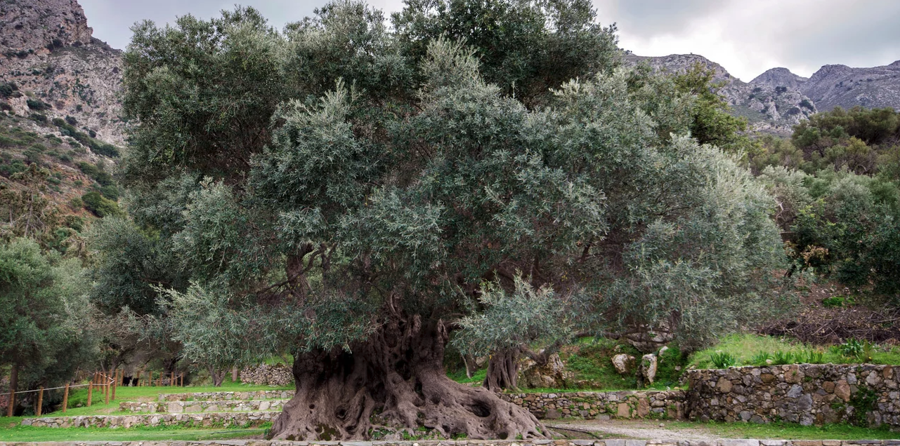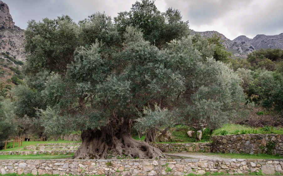 Είτε φυτεύτηκε από άνθρωπο είτε από τη φύση, μεταξύ 2.000 και 3.000 ετών, πριν από την άνοδο της Κλασικής Ελλάδας, ένας σπόρος στην Κρήτη έγινε μια υπεραιωνόβια ελιά που μέχρι σήμερα παράγει μια ετήσια σοδιά λαδιού.