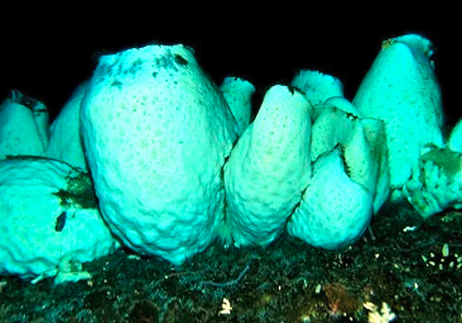 Τα ηφαιστειακά σφουγγάρια της Ανταρκτικής, Anoxycalyx joubini, είναι λευκές σταγόνες που μοιάζουν με γιγάντια βαρέλια μπύρας ή μινιατούρες ηφαιστείων. Η εκτιμώμενη ηλικία τους βασίζεται στο τεράστιο μέγεθος των σφουγγαριών, τα οποία μεγαλώνουν ελάχιστα κάθε χρόνο. Ευδοκιμούν σε βάθη από 50 έως 500 πόδια και μόνο οι πιο αφοσιωμένοι δύτες μπορούν να εξερευνήσουν αυτό το βασίλειο.
