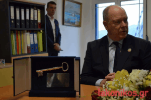 Μαζί με τη σχετική τιμητική πλακέτα, στον πρίγκιπα Αλβέρτο του Μονακό δόθηκε και το «κλειδί» του νησιού.