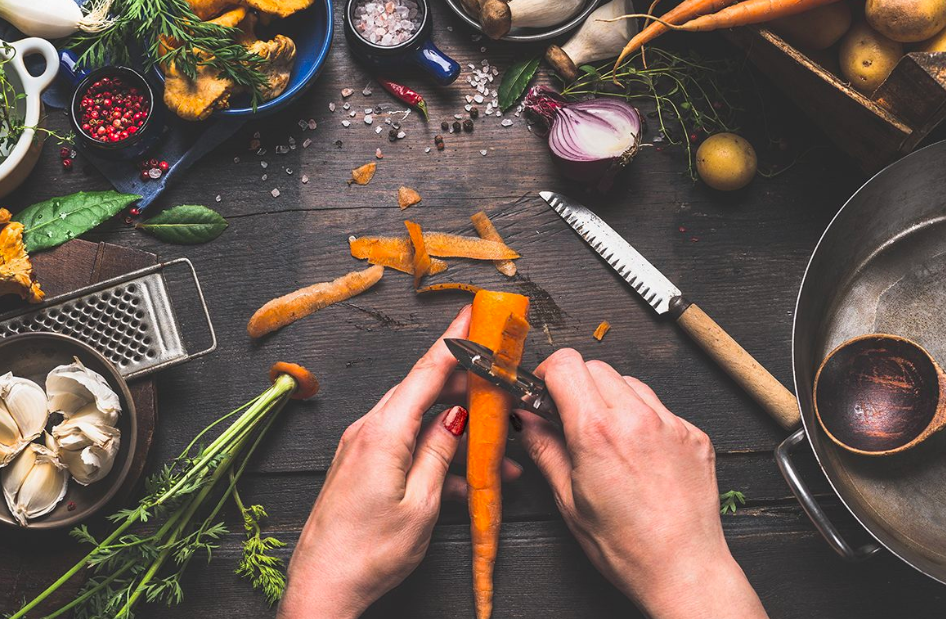 Η καλύτερη γεύση, άλλωστε, κρύβεται στις φλούδες του καρότου, του παντζαριού, του σέλερι και του σέλινου. Πλένουμε καλά φλούδες πατάτας, τις βράζουμε μαζί με κοτσάνια αρωματικών (σέλινο, μαϊντανό, άνιθο ή και κόλιανδρο) σε ελαφρά αλατισμένο νερό, και όταν μαλακώσουν εντελώς, τα πολτοποιούμε, προσθέτουμε βούτυρο και κρέμα γάλακτος ή γιαούρτι, αραιώνουμε αν χρειάζεται με ζωμό λαχανικών και έχουμε μια υπέροχη σούπα. Φυσικά εκτός από φλούδες πατάτας μπορούμε να προσθέσουμε ο,τιδήποτε ανάλογα με την εποχή, από σπαράγγια και πράσα μέχρι παντζάρια.