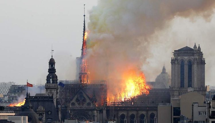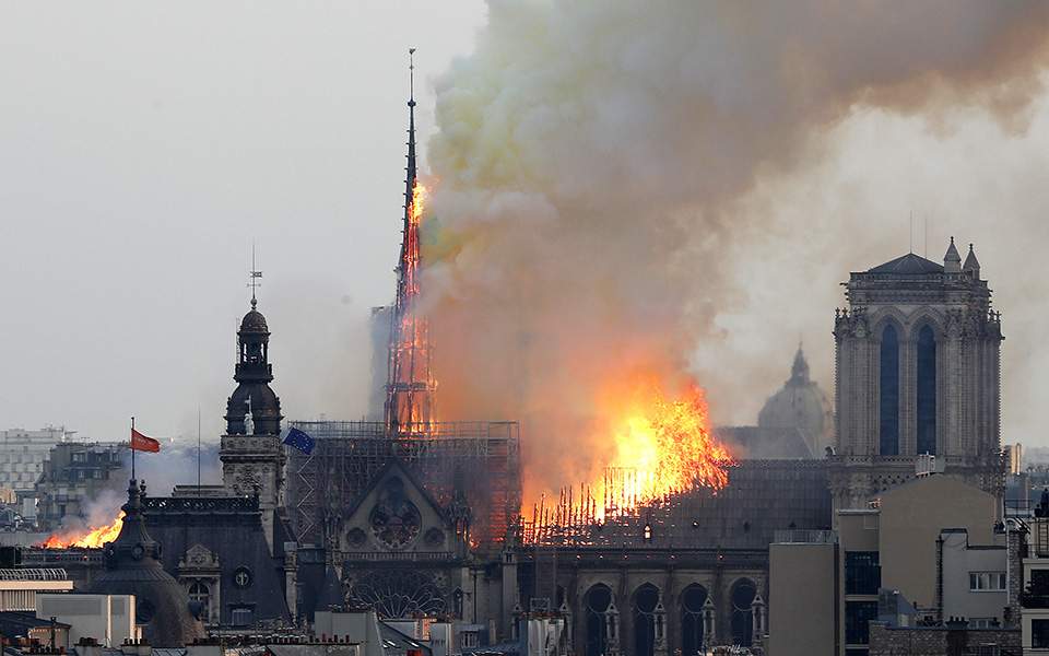 Μέσα σε σχεδόν δύο ώρες η οροφή και το εμβληματικό κωδωνοστάσιο – σαν βέλος – του καθεδρικού ναού κατέρρευσαν ενώ οι εικόνες έκαναν τον γύρο του κόσμου, προκαλώντας τεράστιο σοκ.