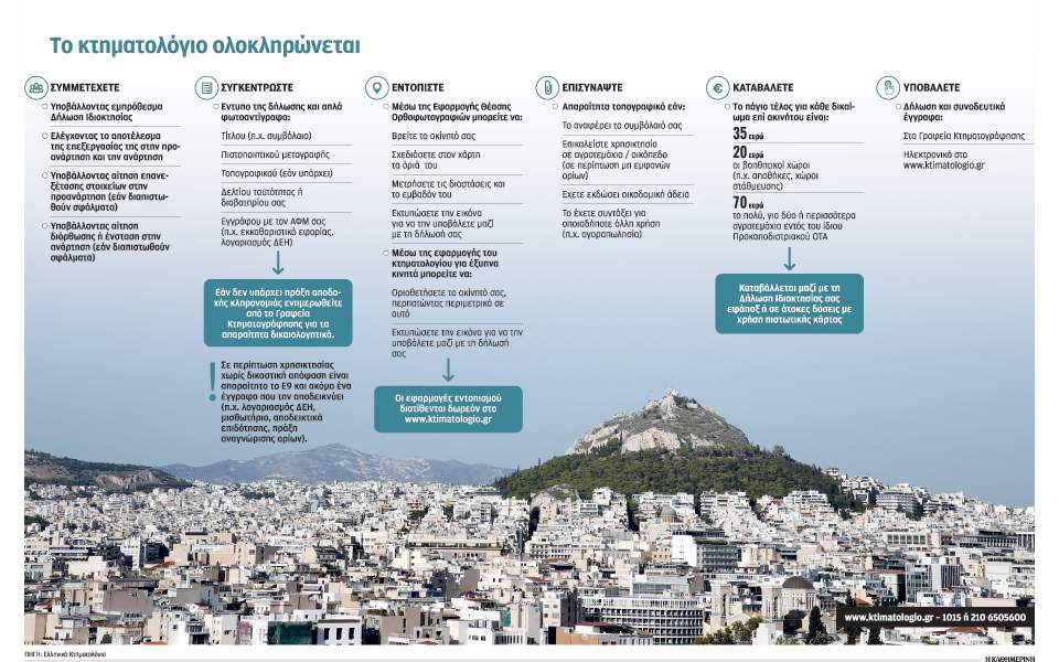 Σύμφωνα με την «Ελληνικό Κτηματολόγιο» απομένει να ξεκινήσει η συλλογή δηλώσεων ιδιοκτησίας σε τρεις ομάδες περιοχών, όλες νησιωτικές: