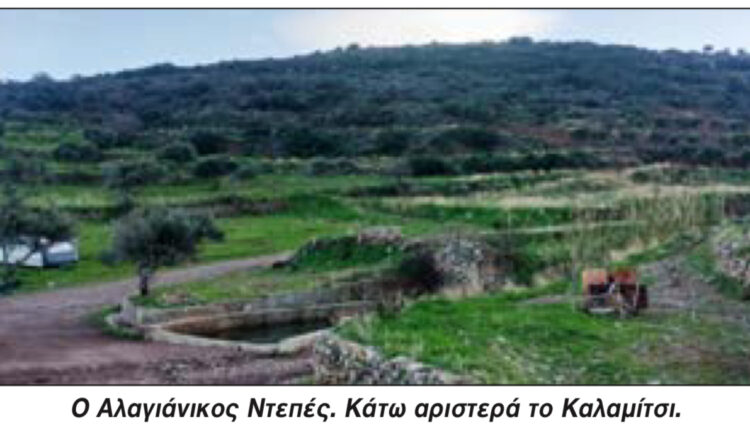 Δεν είναι λίγες οι φορές που για «ιστορικά σημειώματα» ζήτησα βοήθεια από την «Αρβελέρ» της Κυθηραϊκής ιστορίας, τη δική μας Ελένη Χάρου. Τεράστια η υπερηφάνεια μου για τις φορές που εκείνη ζήτησε τα δικά μου φώτα για «Ποταμίτικα» θέματα. Βολεύομαι από αυτή την αμφίδρομη σχέση, γιατί αφορά κατά 90% σε πληροφορίες της Ελένης προς εμένα και κατά 10% το αντίστροφο. Αυτό, παρακαλώ, να μείνει μεταξύ μας, μη το μάθει ο Μανώλης, ο προϊστάμενος – εκδότης μας και περικόψει το δικό μου δημοσιογραφικό επίδομα, για να αυξήσει το επίδομα της Ελένης! Τελευταία, λοιπόν, ζήτησε η Ελένη να της πω κατά πού πέφτει ο «Αλαγιάνικος Ντεπές» (ντεπές = ύψωμα, Τουρκιστί) γιατί τα ξωτάρικα τοπωνύμια δεν τα καλοξέρει[1]. Μήτε κι εγώ ήξερα, κάτεχα όμως τέχνασμα να τον ξετρυπώσω. «Άφησε το θέμα πάνω μου» της είπα κι άρχισα έρευνα. Για εντοπισμό τοπωνυμίων ρωτάω φίλο μου λαγοκυνηγό. Βλέπετε γνωρίζει το όνομα κάθε τόπου, γιατί τον σημειώνει μαζί με την ημερομηνία, κάθε φορά που χάνει λαγό. Λέει πως στον ίδιο τόπο, την ίδια μέρα, ακόμα και την ίδια ώρα, θα τον ξανασυναντήσει του χρόνου και του στήνει καρτέρι. Αυτός ο δεινός λαγοκυνηγός μου φανέρωσε πως Αλαγιάνικος ντεπές καλείται λόφος που δεσπόζει πάνω και νότια από πανέμορφη παραλία, το «Καλαμίτσι». (Ας μη γίνει λόγος, μα για το Καλαμίτσι γράφω κάτι «πικάντικα» στο βιβλίο μου «ΚΟΡΗ ΤΗΣ ΜΟΙΡΑΣ»). Η περιοχή βρίσκεται στην περιφέρεια της Αγ. Πελαγίας και τη διασχίζει ο ασφαλτοστρωμένος δρόμος προς την «Κακιά Λαγκάδα», ο μακρύτερος των Κυθήρων πάνω σε ακτογραμμή.