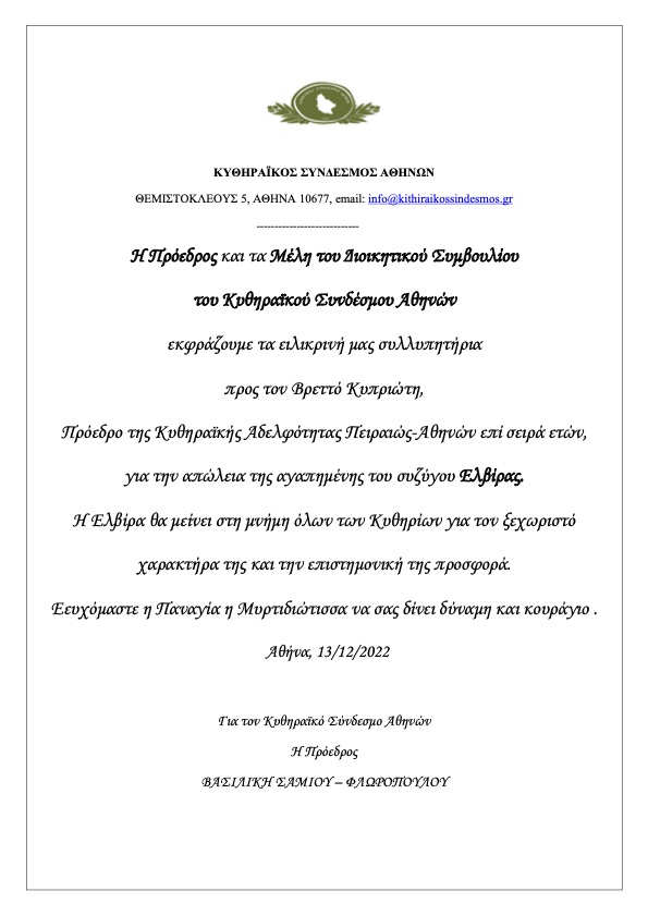 - Συλλυπητήριο μήνυμα – Κ.Σ.Α.