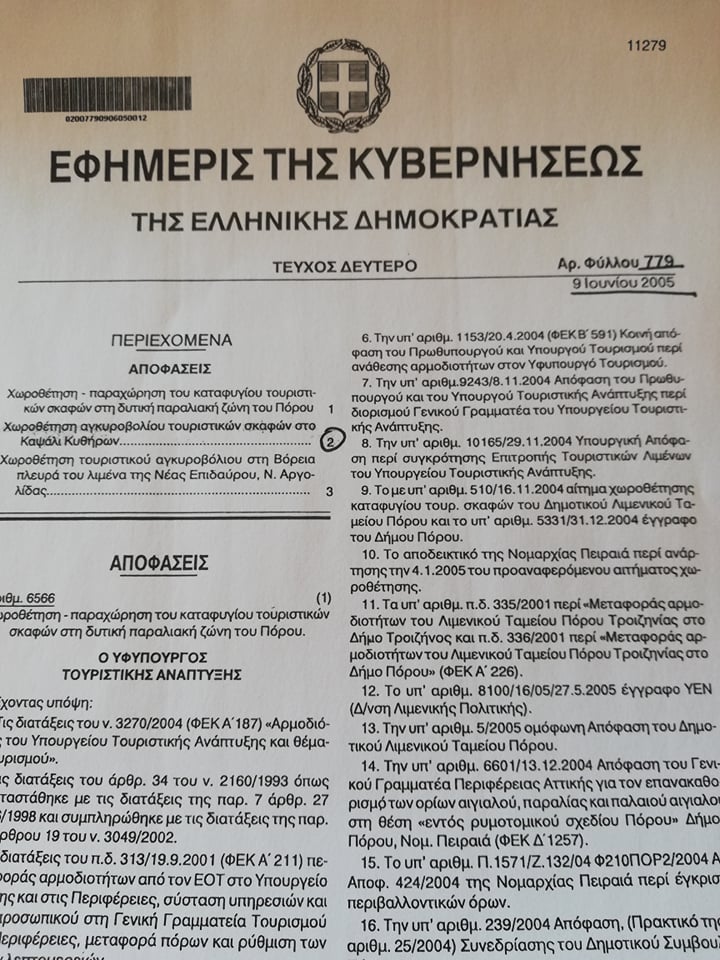 Ο Δήμαρχος ενημέρωσε αναλυτικά τον Υπουργό και τους συνεργάτες του για την οριστική χωροθέτηση του αγκυροβολίου 35 θέσεων ελλιμενισμού στον Πίσω Γυαλό Καψαλίου, με Υπουργική Απόφαση του 2005, κατά της οποίας είχε ασκηθεί αναίτια και αστήρικτη προσφυγή ενώπιον του ΣτΕ από μικρή μερίδα πολιτών (αρκετοί εκ των οποίων δεν διέμεναν καν στο Καψάλι, ενώ πολλοί δεν ήταν μόνιμοι κάτοικοι Κυθήρων), η οποία δυστυχώς οδήγησε σε απώλεια χρηματοδότησης ύψους 2.500.000€ από το Γ΄ Κοινοτικό Πλαίσιο Στήριξης. Μετά την οριστική απόσυρση της προσφυγής των κατοίκων το 2011-12, δεν υπήρξε καμία κινητικότητα στο ζήτημα και αυτό τέθηκε εκ νέου στο Υπουργείο Τουρισμού από τη σημερινή Δημοτική Αρχή το 2015.