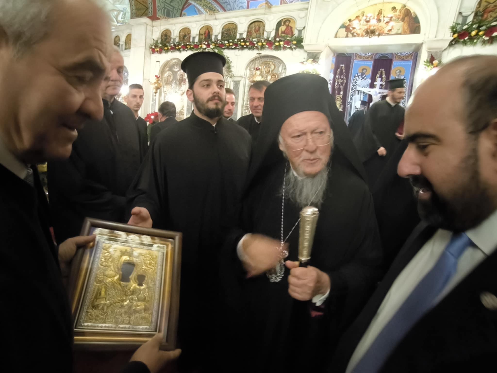 Ο Πατριάρχης, με την απλότητα και την κωνσταντινουπολίτικη ευγένεια που τον διακρίνει, μας ευχαρίστησε θερμά και ασπάστηκε με ευλάβεια την Εικόνα της Μυρτιδιώτισσας.