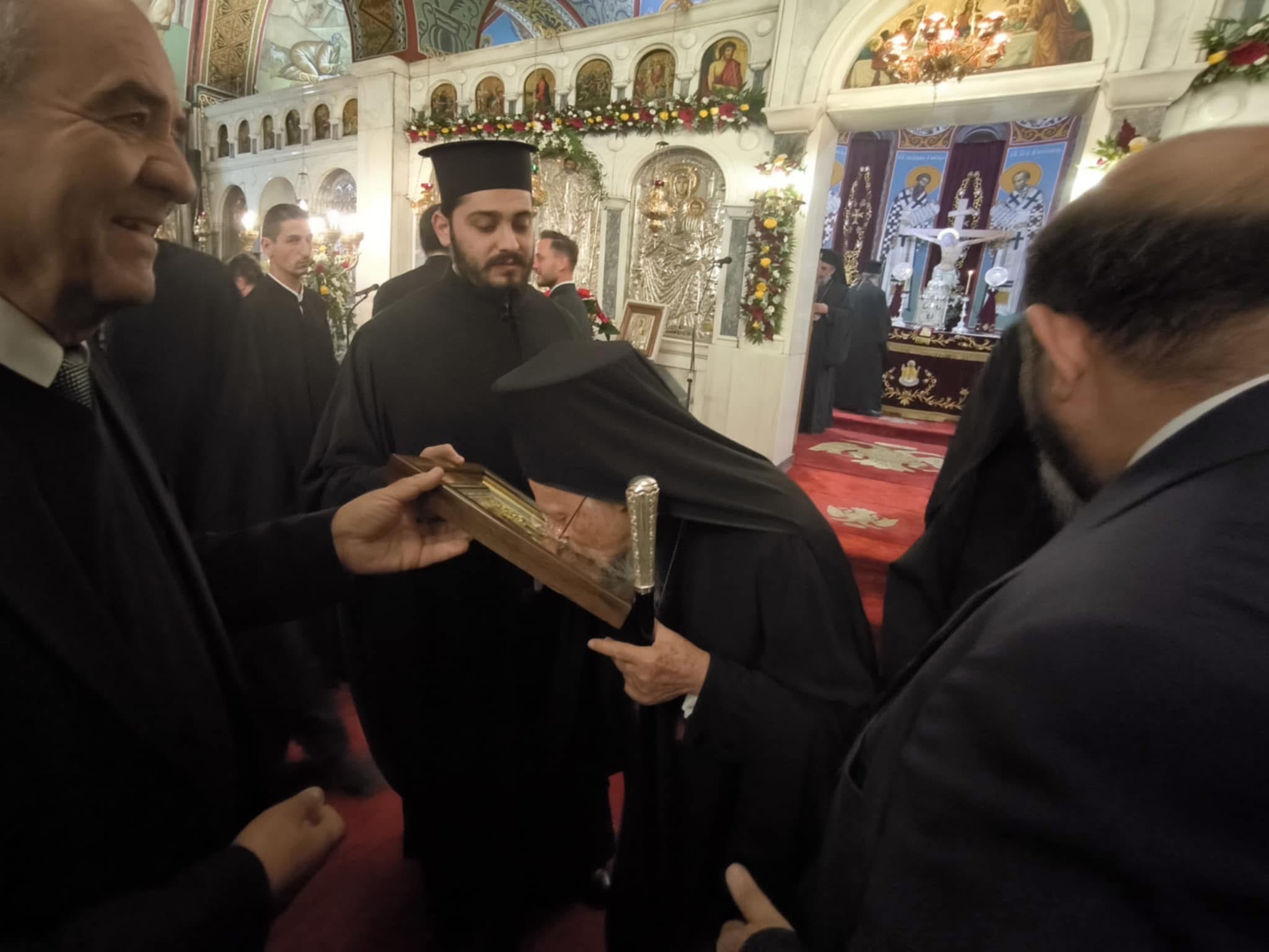 Στον Παναγιώτατο δωρήσαμε την εικόνα της Παναγίας της Μυρτιδιώτισσας καθώς και το βιβλίο με την Ακολουθία του Αγ. Μύρωνος και εκείνος μας ζήτησε να μεταφέρουμε την Πατριαρχική του Ευχή και Ευλογία σε όλους τους κατοίκους των Κυθήρων και Αντικυθήρων.