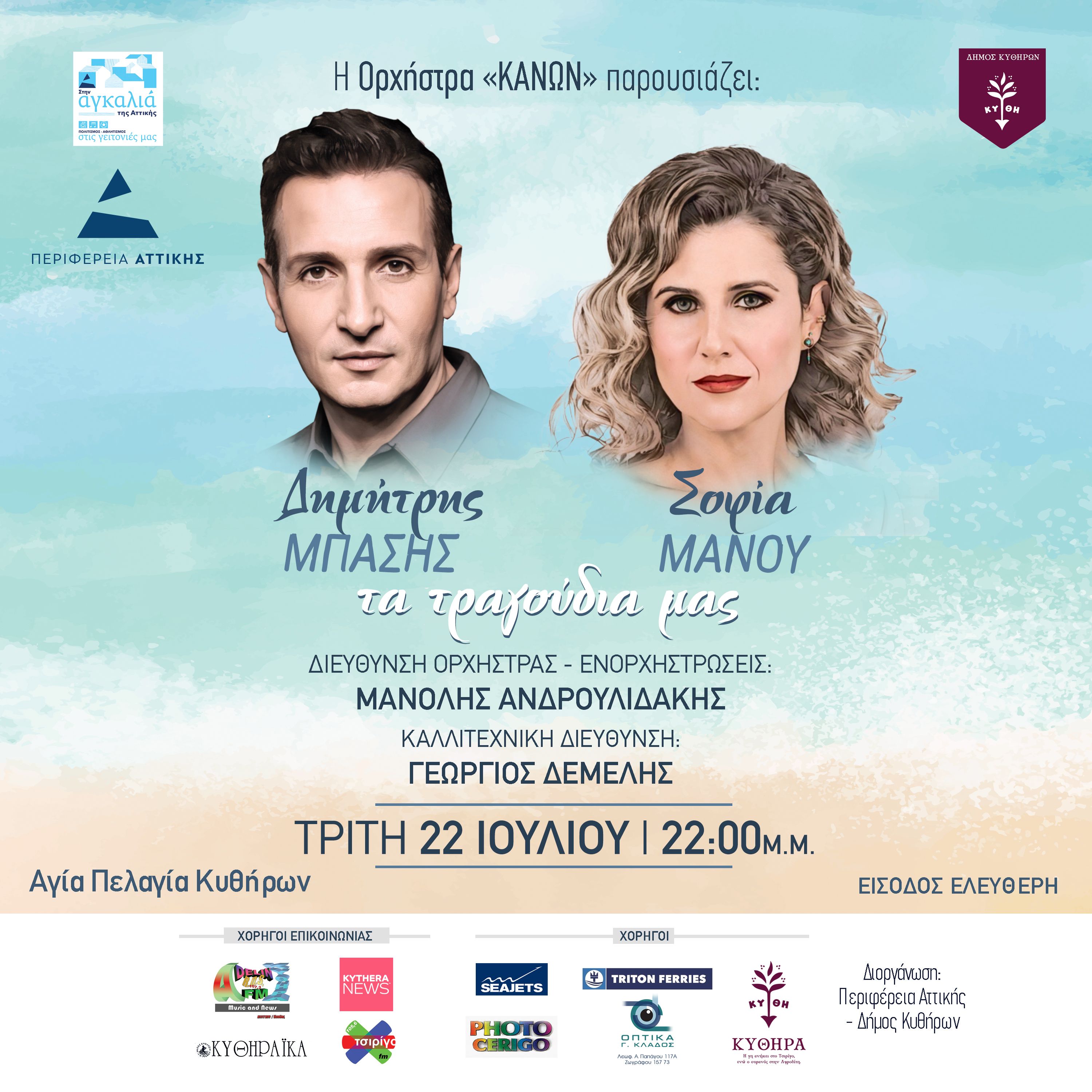 - Συναυλία με το Δημήτρη Μπάση και τη Σοφία Μάνου στην Αγία Πελαγία