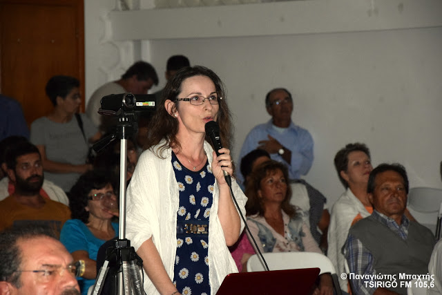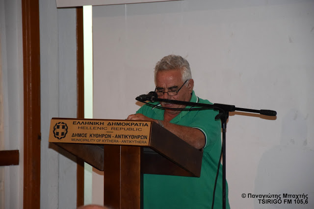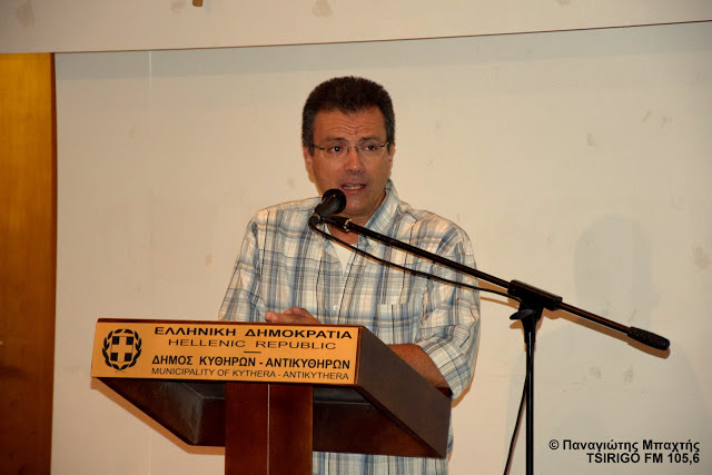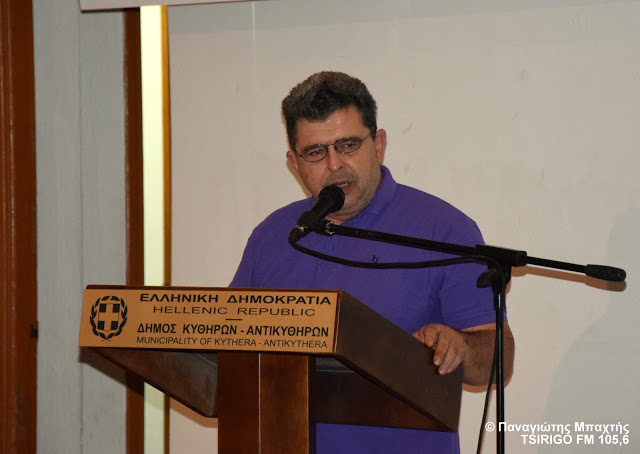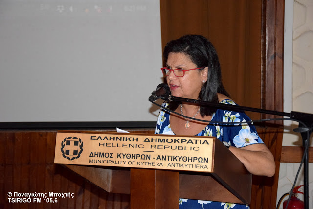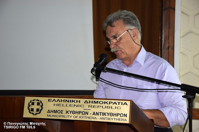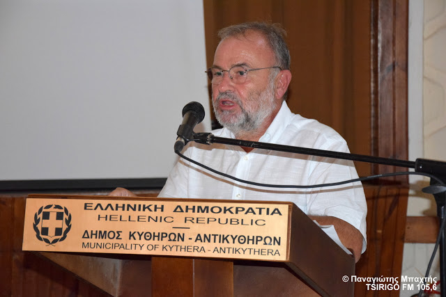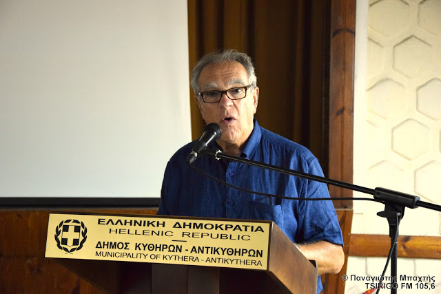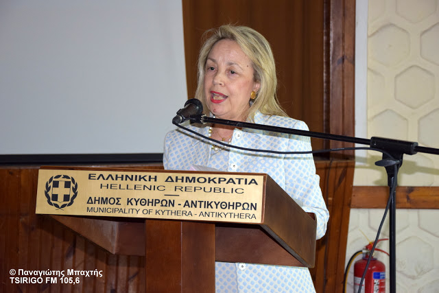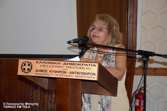 Την εκδήλωση προλόγισαν η Πρόεδρος του Ομίλου Κυθηρίων Πανεπιστημιακών κα. Καίτη Αρώνη Τσίχλη, ο σεβασμιώτατος Μητροπολίτης Κυθήρων και Αντικυθήρων κ. Σεραφείμ και ο Δήμαρχος Κυθήρων κ. Στράτος Χαρχαλάκης.
