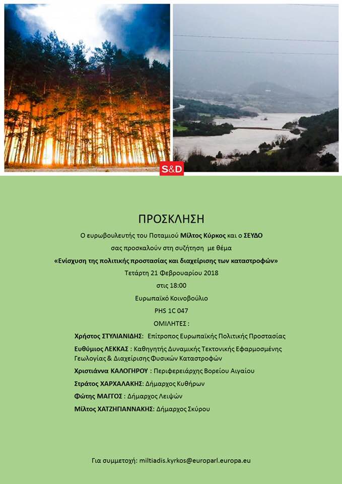 - Συζήτηση στο Ευρωπαϊκό κοινοβούλιο με θέμα: “Ενίσχυση της πολιτικής προστασίας και διαχείρισης των καταστροφών” – Ομιλητής και ο Δήμαρχος Κυθήρων