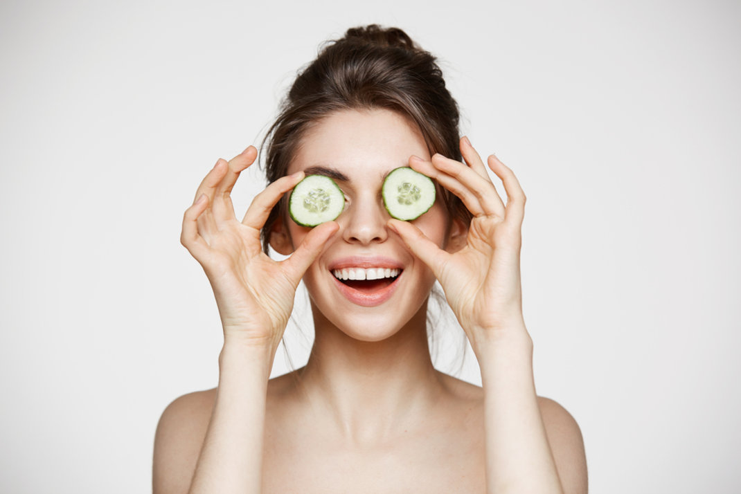 Τα αγγούρια περιέρχουν νερό, βιταμίνη C και καφεϊκό οξύ, μια φυσική χημική ουσία που έχει αντιφλεγμονώδεις ιδιότητες. Έτσι, καταπραΰνουν το δέρμα, μειώνουν τους ερεθισμούς και το πρήξιμο. Γι’ αυτό το λόγο, το αγγούρι είναι σπιτικό φάρμακο για την ακμή και το κάψιμο από το ηλιακό έγκαυμα. Μπορείς να το βάλεις στα μάτια για ξεκούραση.