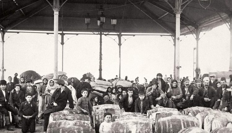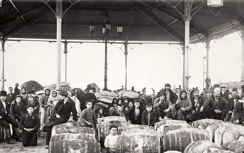 Πρόσφυγες από τη Μικρά Ασία, περιμένοντας να μεταφερθούν στον νέο τόπο κατοικίας τους (Βιβλιοθήκη του Κογκρέσου, Ουάσιγκτον).