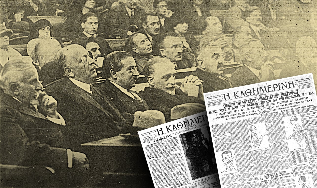 Κι αν για όλες τις υπόλοιπες χώρες ως Μεσοπόλεμος ορίζεται το διάστημα ανάμεσα στον Α’ και τον Β’ Παγκόσμιο Πόλεμο, για εμάς ξεκίνησε λίγα χρόνια αργότερα – όταν η Μεγάλη Ιδέα γινόταν στάχτη στις φλόγες της Σμύρνης. Μία από τις πιο τραγικές στιγμές στην πολιτική ιστορία της Ελλάδας –και η κορυφαία ίσως στιγμή του Εθνικού Διχασμού– ήταν η καταδίκη εις θάνατον και η εκτέλεση τριών πρώην πρωθυπουργών, δύο πρώην υπουργών και του τελευταίου, ουσιαστικά, αρχιστράτηγου στη Μικρά Ασία, δυόμισι μήνες μετά την Μικρασιατική Καταστροφή.