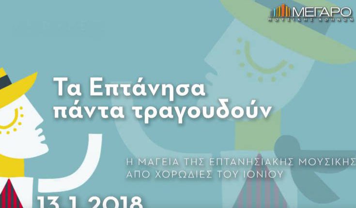Στο Μέγαρο Μουσικής, το Σάββατο 13 Ιανουαρίου 2018, στις 8:30 το βράδυ στην Αίθουσα Χρήστος Λαμπράκης, όπουπάνω από 170 χορωδοί, μαντολίνα, κιθάρες και πνευστά φέρνουν την αύρα του αυθεντικού μουσικού πολιτισμού των Ιονίων Νήσων, έναν πολιτισμό που γεφυρώνει την Ελλάδα και τη Δύση.Καντάδες, άριες και αρέκιες από μια παράδοση που διατηρείται ολοζώντανη, ενταγμένη στην καθημερινότητα των κατοίκων, μαζί με τις περίφημες φιλαρμονικές, μια παράδοση που διδάσκεται και μεταδίδεται ολοζώντανη από γενιά σε γενιά.