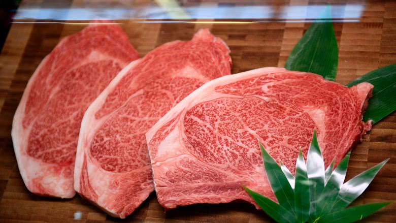 Το μοσχαρίσιο κρέας από την Ιαπωνία προέρχεται από ένα συγκεκριμένο είδος μοσχαριού που εκτρέφεται με έναν πολύ μοναδικό τρόπο που περιλαμβάνει μέχρι… μασάζ και μπύρα στη διατροφή του, ώστε να παραμένει τρυφερό το κρέας του. Γεύση και υφή το καθιστούν υπέροχο, γι΄αυτό και η μπριζόλα κοστίζει €250.