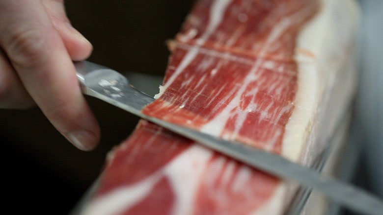 Ένα από τα πιο χαρακτηριστικά εδέσματα της ισπανικής κουζίνας είναι το jamón ibérico, με το Bellota να αποτελεί την καλύτερη και ποιοτικότερη εκδοχή του. Ως εκ τούτου και την ακριβότερη. Το αλλαντικό από την ιβηρική ράτσα μαύρου χοίρου (που τρέφεται ως επί το πλείστον με βελανίδια) με το ενδομυϊκό λίπος και το αξεπέραστο άρωμα του κρέατός του, ωριμάζει 36-48 μήνες σε ειδικά κελάρια και σερβίρεται σε πολύ λεπτές φέτες ώστε να λιώνει στο στόμα. Ένα ολόκληρο μπούτι από το συγκεκριμένο κοστίζει έως και €1.000.