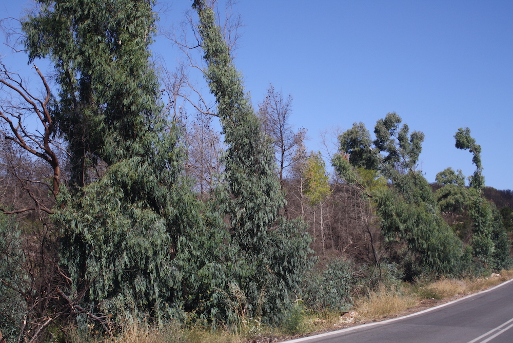 Θα κλείσουμε αυτό το, δικαιολογημένα με αρκετή αγανάκτηση, άρθρο μας με όσα βλέπουν όλοι πάνω στον κεντρικό δρόμο (θέση Κερά Ρήνη). Τα πεύκα καμένα, περιμένουν το πριόνι. Δίπλα τους οι ευκάλυπτοι καταπράσινοι, ένα μόνο χρόνο μετά. Παραμέσα πολλά νέα φυντάνια περιμένουν να τα τσαλαπατήσουν τα συνεργεία, όταν και όποτε ευδοκήσουν να φανούν κατά δω. Ασφαλώς δεν θα μπούμε στον πειρασμό να αφορίσουμε τα πεύκα, καθώς υπάρχουν μέρη, που μόνον αυτά ευδοκιμούν. Όμως σε πολλά οι ευκάλυπτοι μπορούν κάλλιστα να τα αντικαταστήσουν. Το αποτέλεσμα φαίνεται όπου φυτεύτηκαν μερικοί σε διάφορα σημεία του νησιού. Θα γίνουν τα παθήματα μαθήματα;