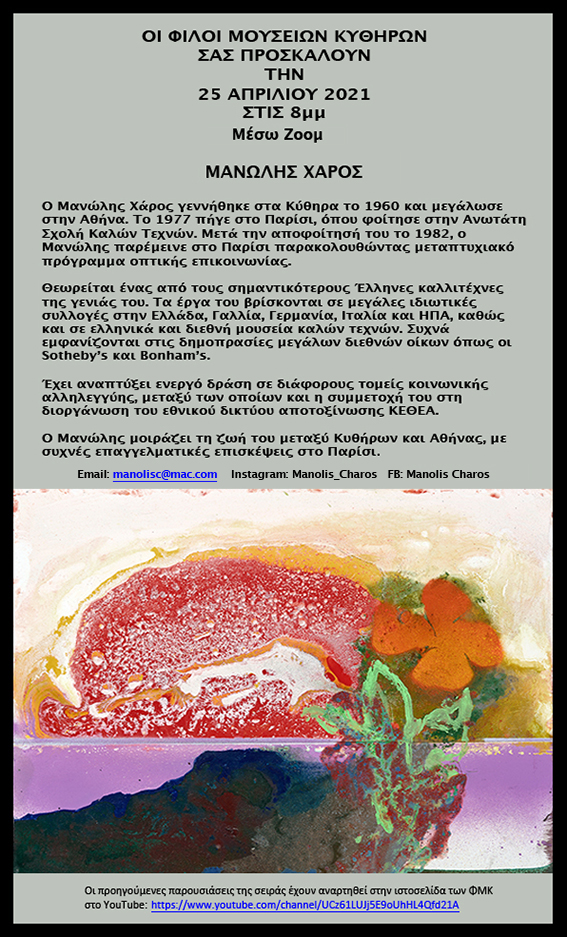 Οι Φίλοι Μουσείων Κυθήρων σας προσκαλούν στην παρουσίαση του έργου του