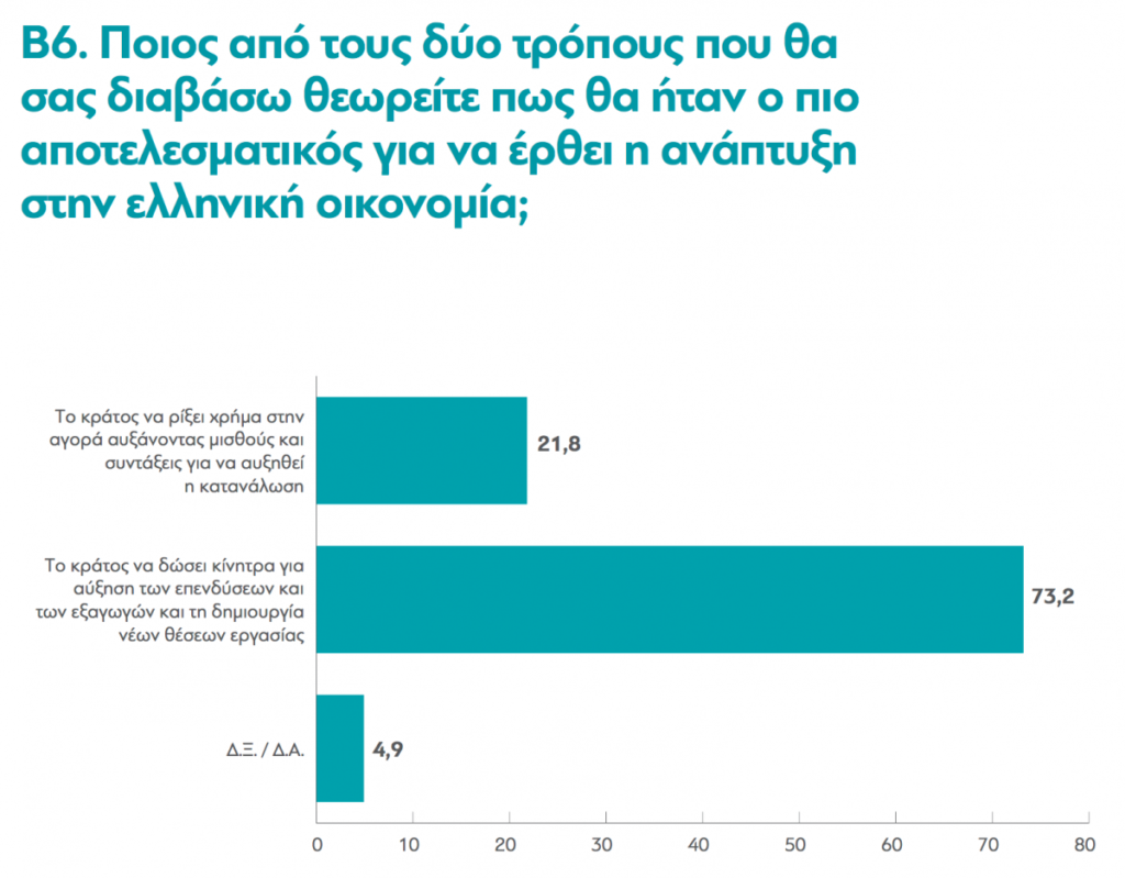 -Το 76% δηλώνει ως βασική αιτία της κρίσης ότι «όλοι μας συνηθίσαμε να καταναλώνουμε περισσότερα από όσα παράγουμε», δηλαδή έχουν συναίσθηση της πραγματικότητας.