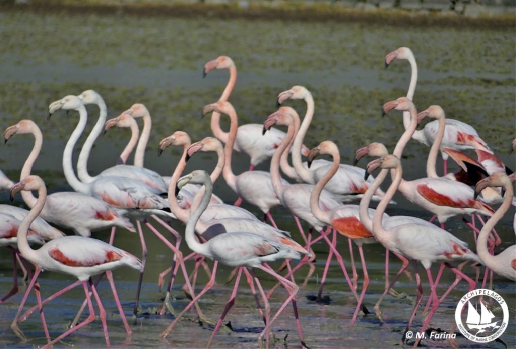 Τους χειμερινούς μήνες, πολυάριθμα σπάνια και προστατευόμενα είδη πουλιών, όπως τα Φοινικόπτερα (Φλαμίνγκο – Phoenicopterus roseus) της φωτογραφίας, αναζητούν ασφαλές καταφύγιο στους μικρούς υδροβιότοπους του Αιγαίου.