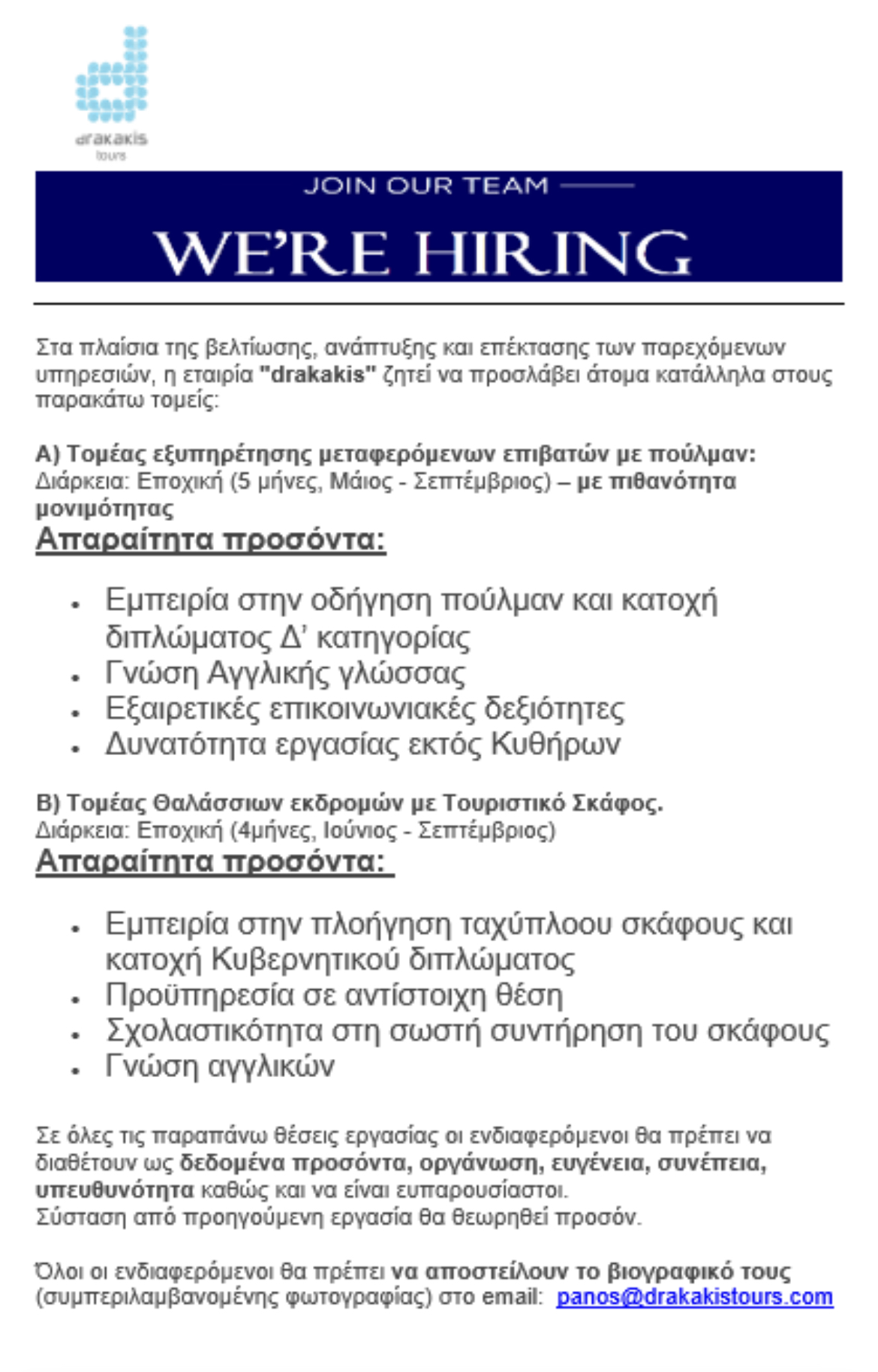 Θέσεις εργασίας στην Drakakis Tours