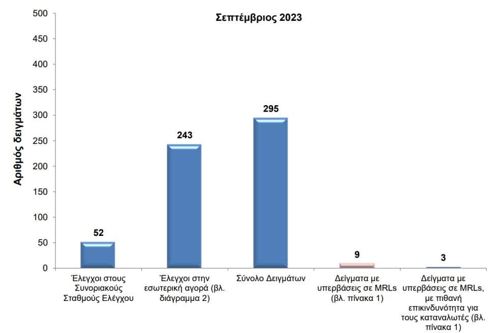 Έλεγχοι που διενεργήθηκαν από τις αρμόδιες αρχές της Ελλάδας το μήνα Σεπτέμβριο 2023 για την ανίχνευση υπολειμμάτων φυτοπροστατευτικών προϊόντων μέσα ή πάνω σε τρόφιμα φυτικής προέλευσης: