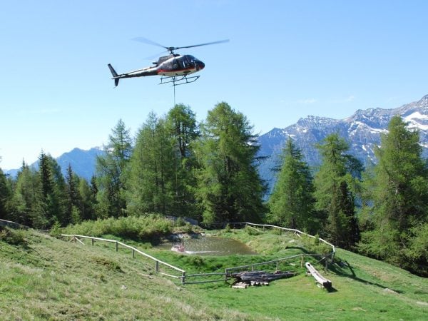 Ελεγχος πρόσβασης και λειτουργικότητας δεξαμενής νερού από ελικόπτερο που φέρει κάδο αεροπυρόσβεσης, στην περιοχή του Τιτσίνο.