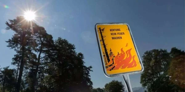 Ενημερωτική πινακίδα που απαγορεύει το άναμμα φωτιάς στην περιοχή του δάσους.
