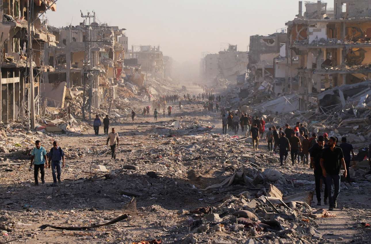 «Οι αόριστες ρήτρες αυτής της συμφωνίας επιστρέφουν την Παλαιστίνη στις 6 Οκτωβρίου 2023, με τον επιβαρυντικό παράγοντα ότι η Γάζα είναι πλέον κατεστραμμένη και ο λαός της τραυματισμένος, ακρωτηριασμένος, άρρωστος και άπορος». Απορος κατά πάσα έννοια, συμπληρώνουμε, αφού διέξοδος, πόρος δηλαδή, δεν υπάρχει για τους πενομένους. «Η Γάζα θα ανοικοδομηθεί ύστερα από 20 χρόνια. Και μετά τι; Ο στρατός του Ισραήλ οχυρώνεται μέσα στη Λωρίδα για να ελέγξει τη ζωή των Παλαιστινίων και κρατάει κλειστό και τον διάδρομο μεταξύ Γάζας και Αιγύπτου, ώστε οι Παλαιστίνιοι να μην μπορούν να φύγουν από την υπαίθρια φυλακή τους».