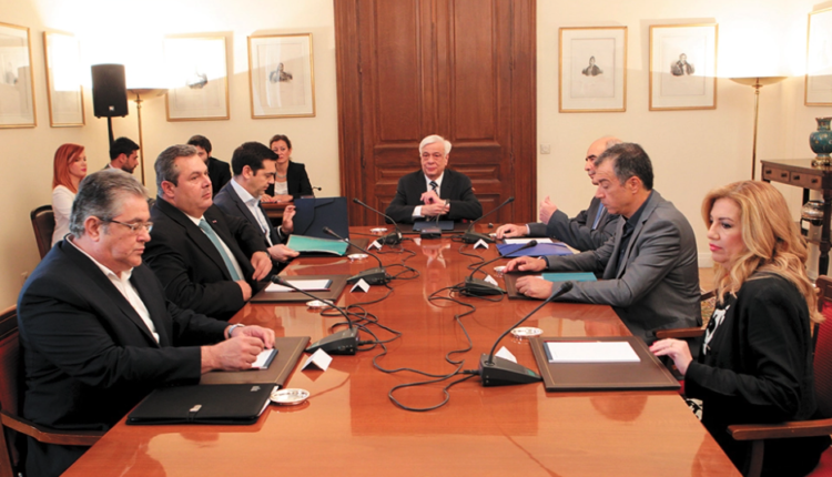 Λίγο αργότερα ο κ. Παυλόπουλος επικοινώνησε με τον κ. Τσίπρα και συμφώνησαν να επισκεφθεί ο πρωθυπουργός το Προεδρικό Μέγαρο και να ζητήσει τη σύγκληση του συμβουλίου πολιτικών αρχηγών. Ο πρωθυπουργός επισκέφθηκε τον Πρόεδρο λίγο πριν από τη μία μετά τα μεσάνυχτα, αφού πέρασε από το Σύνταγμα για να χαιρετίσει τους οπαδούς του «Οχι» που πανηγύριζαν. Νωρίτερα, στο τηλεοπτικό του διάγγελμα ήταν προσεκτικός: «Η εντολή που μου δίνετε δεν είναι εντολή ρήξης με την Ευρώπη, αλλά εντολή ενίσχυσης της διαπραγματευτικής δύναμης για την επίτευξη βιώσιμης συμφωνίας». Στη μεταμεσονύχτια συνάντηση ο κ. Παυλόπουλος επανέλαβε ότι αν στο συμβούλιο των αρχηγών δεν επιτευχθεί συναίνεση για την παραμονή στην Ευρώπη, τότε θα παραιτηθεί. Ο κ. Τσίπρας είπε στον κ. Παυλόπουλο ότι η πρόθεσή του είναι να οπλιστεί με τη συναίνεση όλων των κομμάτων για μια νέα διαπραγμάτευση. Ο τέως Πρόεδρος προετοίμασε ένα κείμενο συμφωνίας και το ίδιο έκαναν όλοι οι πολιτικοί αρχηγοί. Το τελικό κείμενο εκφράζει μια σύνθεση των απόψεων, με κύριο κορμό το κείμενο της Προεδρίας.