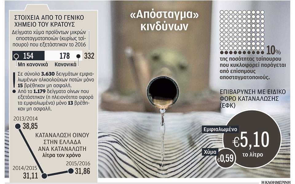 «Τα τελευταία χρόνια το θολό νομικό τοπίο και η απουσία ελέγχων έχουν οδηγήσει στην αγαπημένη παράδοση πολλών ελληνικών χωριών, την απόσταξη τσίπουρου, σε μια επικίνδυνη για τη δημόσια υγεία επιχειρηματική δραστηριότητα» τονίζει στην «Κ» ο Σύνδεσμος Ελλήνων Παραγωγών Αποσταγμάτων και Αλκοολούχων Ποτών (ΣΕΑΟΠ).