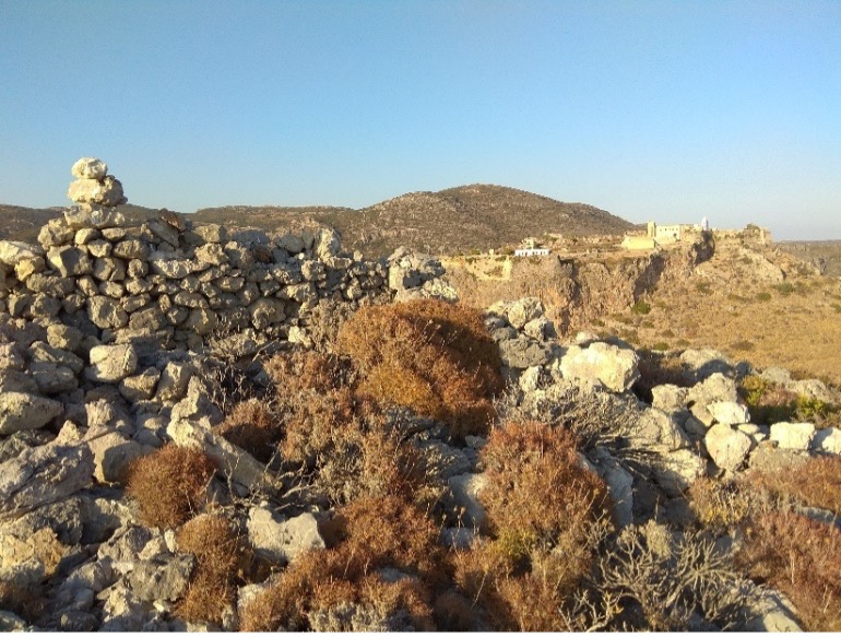 Εικόνα 6 Άποψη του Κάστρου της Χώρας μέσα από τα ερείπια της παλαιάς βίγλας, στην κορυφή του λόφου