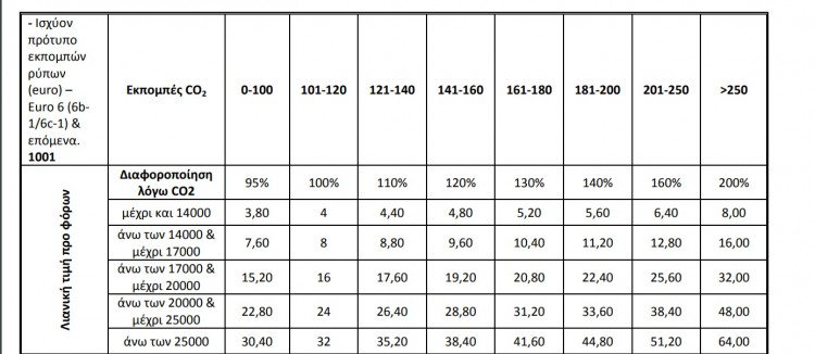 Ο υπολογισμός του τέλους ταξινόμησης γίνεται με βάση την τιμή προ φορών ή αλλιώς την εργοστασιακή αξία και τα γραμμάρια CO2 που εκπέμπει (παρακάτω μπορείτε να δείτε τους συντελεστές ανά κλίμακα). Βέβαια, όπως συμβαίνει με το σύνολο των προϊόντων της ελληνικής αγορά, έτσι και το αυτοκίνητο, επιβαρύνεται με 24% ΦΠΑ.