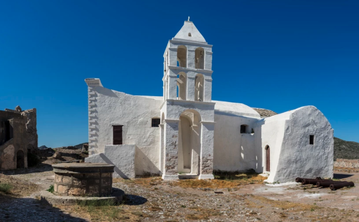 Στα όσα σίγουρα κεντρίζουν το ενδιαφέρον στο εσωτερικό του, αλλά και γύρω από αυτό, το γεγονός ότι παρατηρούνται αρκετές εκκλησίες, οι οποίες χρονολογούνται από τον 15ο αιώνα. Ο πάλλευκος ναός της Παναγίας Μυρτιδιώτισσας, προστάτιδας του νησιού, ανάμεσα σε όσους κεντρίζουν το ενδιαφέρον. Μάλιστα μέχρι το 1806 ήταν καθολικός ναός και ονομαζόταν Παναγία των Λατίνων.