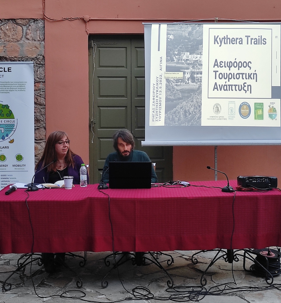 Το ΚΙΠΑ εκπροσώπησε ο διευθυντής προγραμμάτων, Ρήγας Ζαφειρίου, αναφέροντας τα καινοτόμα στοιχεία του προγράμματος Kythera Trails (όπως πράσινες υποδομές, επιστημονική προσέγγιση INCREAte μεταξύ άλλων) τα οποία το οδήγησαν στο πλατινένιο βραβείο για την αειφόρο τουριστική ανάπτυξη στα Tourism Awards 2022.