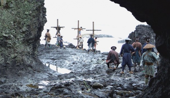 …είναι η σκηνή του αργού θανάτου των χριστιανών που είναι σταυρωμένοι στην ακρογιαλιά. Η θάλασσα ανεβαίνει σιγά σιγά και απλώνεται, θα τους πνίξει αργά και βασανιστικά. Και μόνο από αυτή τη σκηνή φαίνεται αυτή η θέση του σεβασμού και, θα έλεγα, της ταύτισης του Σκορσέζε με τους χριστιανούς. Εκεί δηλαδή φαίνεται φανερά η θέση την οποία παίρνει ο σκηνοθέτης. Επίσης, μία άλλη κρίσιμη στιγμή είναι όταν ο πατέρας Ροντρίγκεζ, ο οποίος ερμηνεύεται με μαγικό τρόπο από τον Άντριου Γκάρφιλντ και ο οποίος ενσαρκώνει με εξαιρετικό τρόπο αυτό το δισυπόστατο που έχει ο χαρακτήρας του, τη θρησκευτική φλόγα, την πίστη του απ’ τη μια, από την άλλη την ευθραυστότητα του προσώπου. Εδώ φαίνεται και η μαεστρία του Σκορσέζε σε σχέση με τον συγγραφέα, ο οποίος ακούει καθαρά και σε αντήχηση τη φωνή του Χριστού. Και όχι τη φωνή της συνείδησης, δηλαδή της δικής του, του πατέρα Ροντρίγκεζ. Εκεί μιλάει ο Χριστός. Μάλιστα, ο Ροντρίγκεζ, εκείνη την στιγμή αποφασίζει -είναι αυτή η στιγμή ας πούμε, η τραγική γι’ αυτόν, για να σώσει την ζωή των άλλων χριστιανών- να πατήσει το σταυρό που του φέρνουν οι βασανιστές του, οι Ιάπωνες, και ακούμε την φωνή του Χριστού που λέει: «Πάτησέ με. Ήρθα στον κόσμο για να με πατήσετε, γι’ αυτό σήκωσα το σταυρό για να σηκώσω και να μοιραστώ τον πόνο, το μαρτύριο, τα βάσανα, τις οδύνες σας».