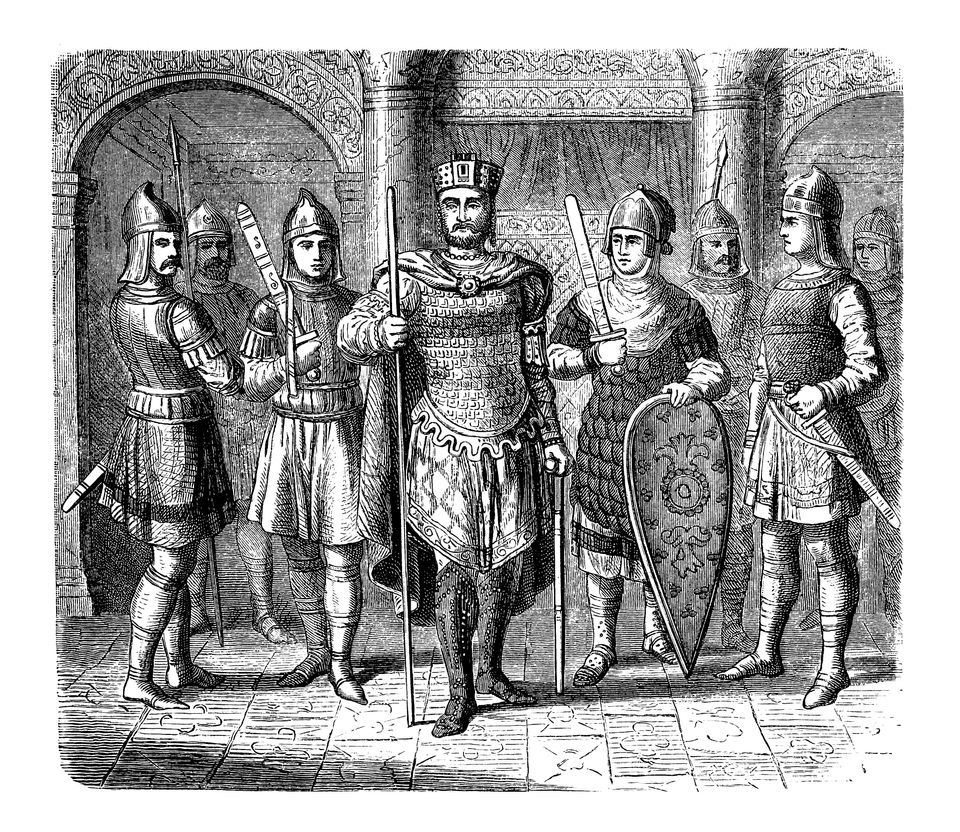 Σκανδιναβοί. Η Βαράγγειος Φρουρά αποτελούσε ένα επίλεκτο μισθοφορικό τμήμα του βυζαντινού στρατού, στο οποίο υπηρετούσαν άνδρες από διάφορα έθνη της βόρειας Ευρώπης. Ως αποστολή είχαν φύλαξη του αυτοκράτορα, στον οποίο ήταν αφοσιωμένοι μέχρι θανάτου. Μέχρι τις αρχές του 13ου αιώνα, η φρουρά των Βαράγγων αποτελούνταν κυρίως από Σκανδιναβούς. Για τους Βίκινγκς ήταν μεγάλη τιμή να ταξιδέψουν ως την μακρινή Κωνσταντινούπολη και να υπηρετήσουν στην προσωπική σωματοφυλακή του αυτοκράτορα, καθώς επρόκειτο για μια θητεία που εξασφάλιζε δόξα αλλά και χρήμα. Οι Βυζαντινοί μονάρχες εκτιμούσαν ιδιαίτερα τους Βορειοευρωπαίους μισθοφόρους. Στα 1195, ο Αλέξιος ο Γ΄, ζήτησε από τους βασιλείς των σκανδιναβικών χωρών την αποστολή επιπλέον 1.200 πολεμιστών, για να τους εντάξει στην φρουρά του. Κατά την άλωση της Κωνσταντινούπολης από τους Σταυροφόρους, το 1204, οι Βαράγγοι είχαν προκαλέσει πολύ μεγάλες απώλειες στους Λατίνους εισβολείς. Αυτή όμως ήταν και η τελευταία φορά που οι πηγές μνημονεύουν Σκανδιναβούς στρατιώτες στην υπηρεσία των Βυζαντινών. Οι Βορειοευρωπαίοι μισθοφόροι πολεμούσαν ως πεζικό, ενώ βασικό τους όπλο ήταν ο μεγάλος βαρύς πέλεκυς.