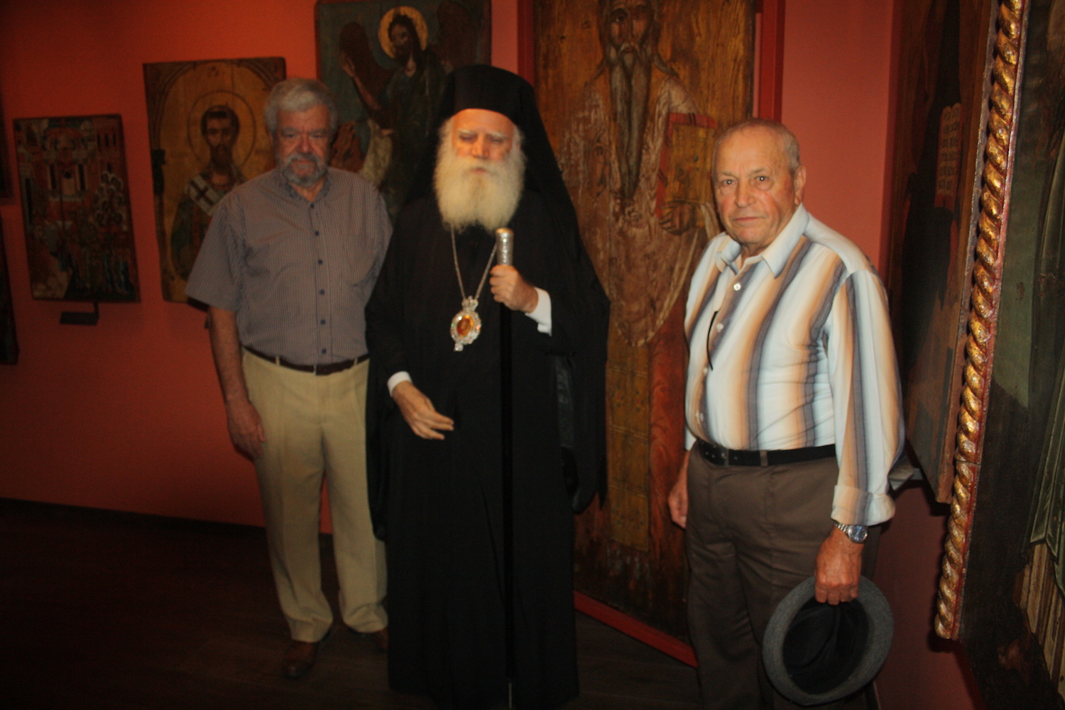 Ο κ. Γ. Στάθης δεξιά, με το Μητροπολίτη Κυθήρων κκ Σεραφείμ και τον Πρόεδρο της Εγχωρίου κ. Π. Κομηνό αριστερά.