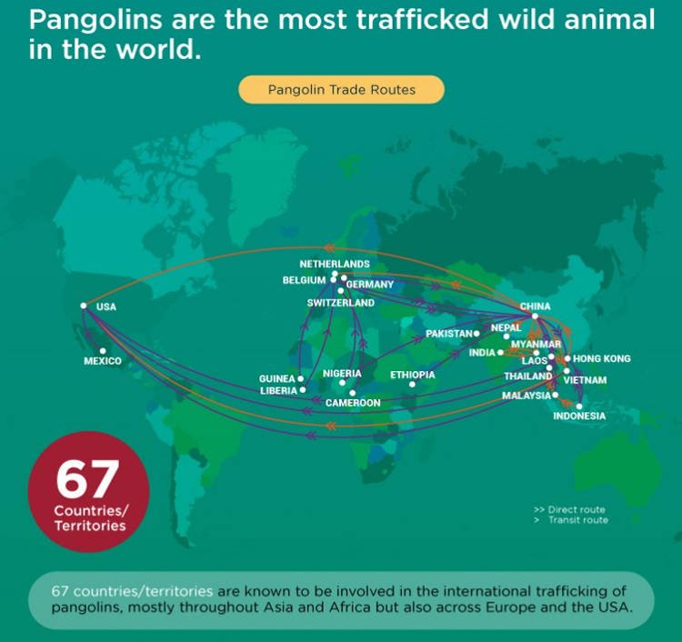 Παρότι το εμπόριό τους απαγορεύτηκε τον περασμένο Ιανουάριο, το λαθρεμπόριο ανθεί. Στην Νοτιοανατολική Ασία, οι παγκολίνοι πέφτουν θύματα λαθροθηρίας και μεταφέρονται παράνομα δια θαλάσσης στο Βιετνάμ και την Κίνα, όπου το κρέας και οι φολίδες τους πιστεύεται πως έχουν θεραπευτικά οφέλη.