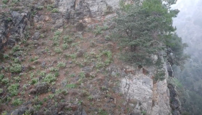 Ο Ανδρέας Τζατζιμάκης με κάμερα drone απαθανατίζει ένα όχι και τόσο συχνό θέαμα, μια και πρέπει να είσαι τυχερός για να δεις κρητικό αίγαγρο στο φαράγγι της Σαμαριάς.