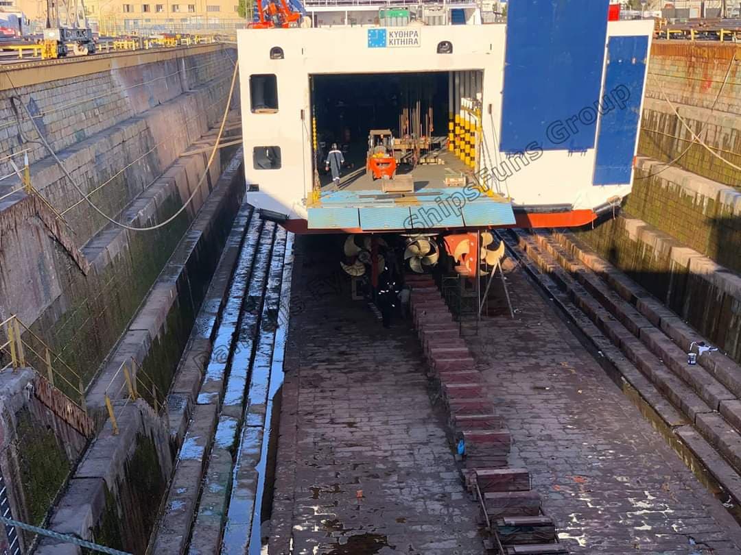 Σχετικά με την προσθήκη τρίτης μηχανής είχαμε γράψει πρώτοι στο φύλλο μας της 1ης Νοεμβρίου 2020 και τώρα αυτό έγινε πραγματικότητα. Στη φωτογραφία (με άδεια της ιστοσελίδας Pantelis Fyssas) είναι λίγες μέρες πριν την έξοδο του πλοίου από την δεξαμενή και δείχνει τις τρεις προπέλες με τις οποίες πλέον θα κινείται το σκάφος.