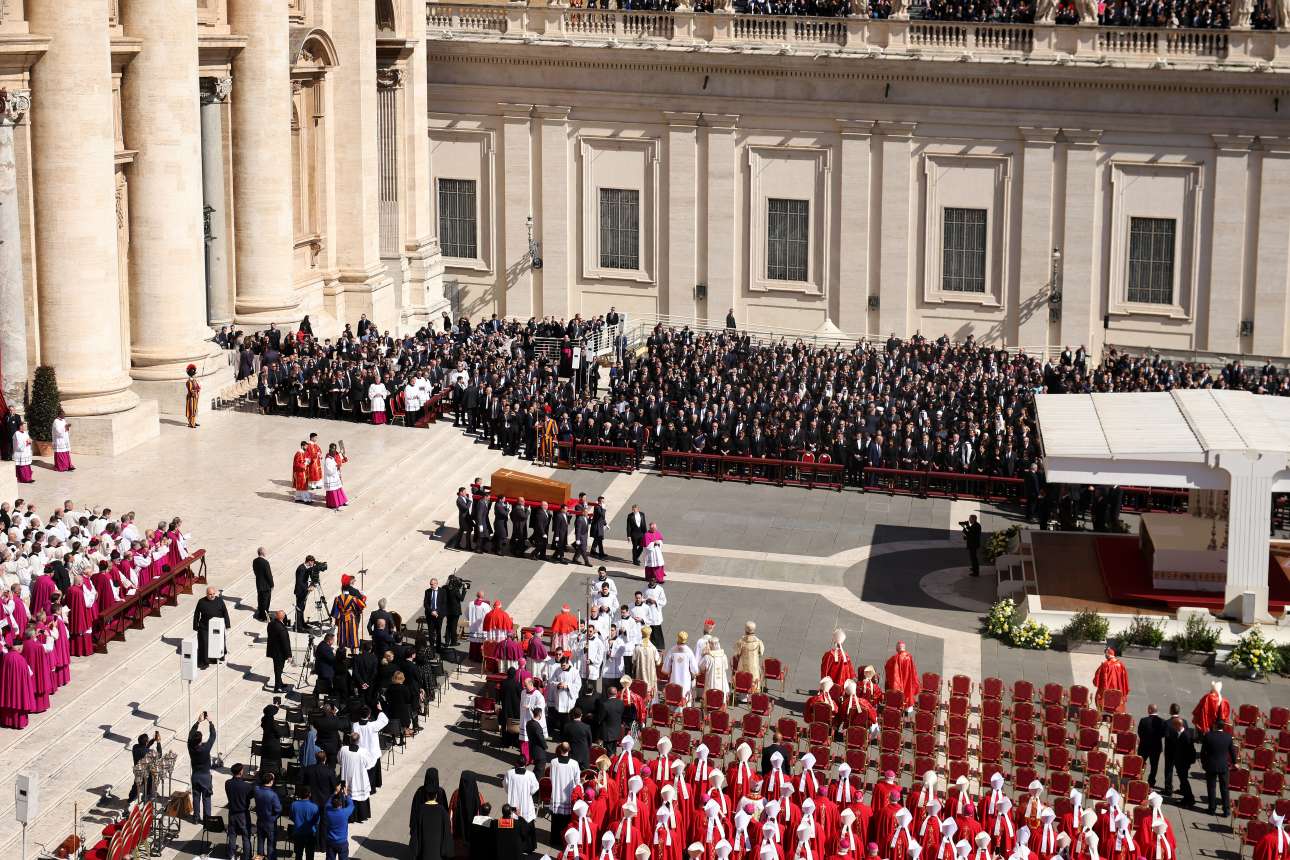 Η πλατεία του Αγίου Πέτρου από ψηλά – το φέρετρο διακρίνεται κάτω (EPA/ALESSANDRO DI MEO)