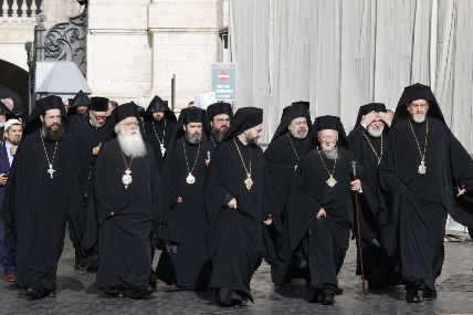 Ορθόδοξοι ιερείς καταφθάνουν στο Βατικανό για τη νεκρώσιμη ακολουθία του προκαθήμενου της Ρωμαιοκαθολικής Εκκλησίας (Getty Images)